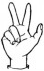 На ћирилици написано ШАЛЕ ПЕРУНАЦ састоји се из 11 слова [?]. Исписано ћириличном једноручном азбуком за глувонеме: